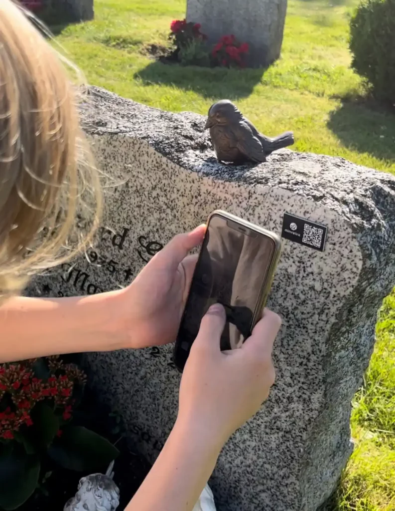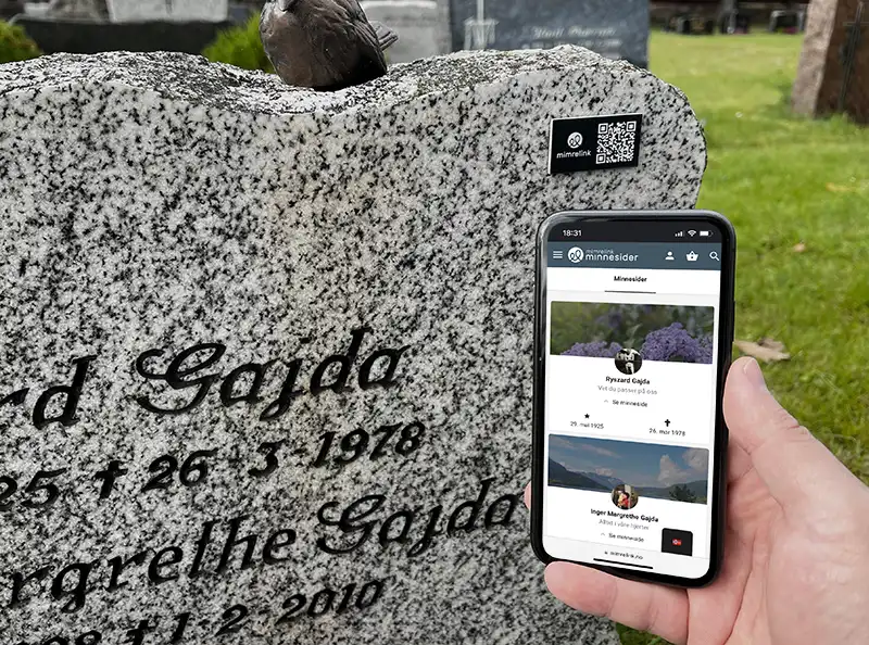Etter noen dager mottar du ditt QR-skilt i posten, klar til montering, linket opp mot minnesiden du opprettet.