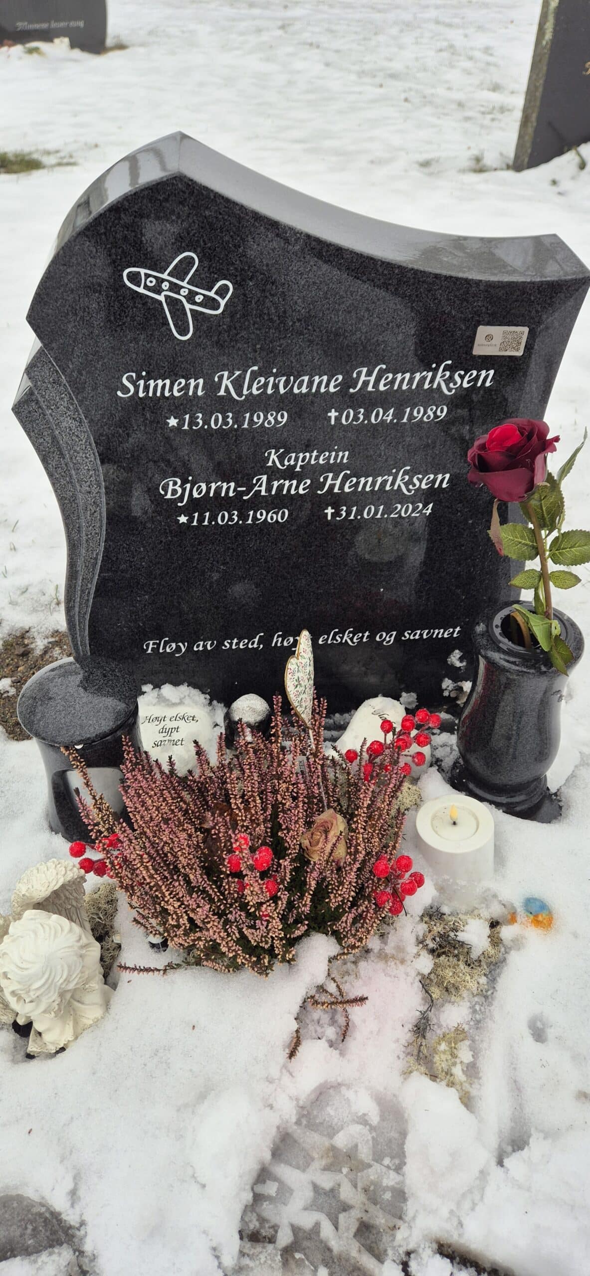 Du ble begravet 16.02.2024 på Råde kirkegård. Der vil og vår sønn Simen sitt navn på gravstøtta, da vi foretar en sermoniel flytting av Simen fra Horten kirkegård.
