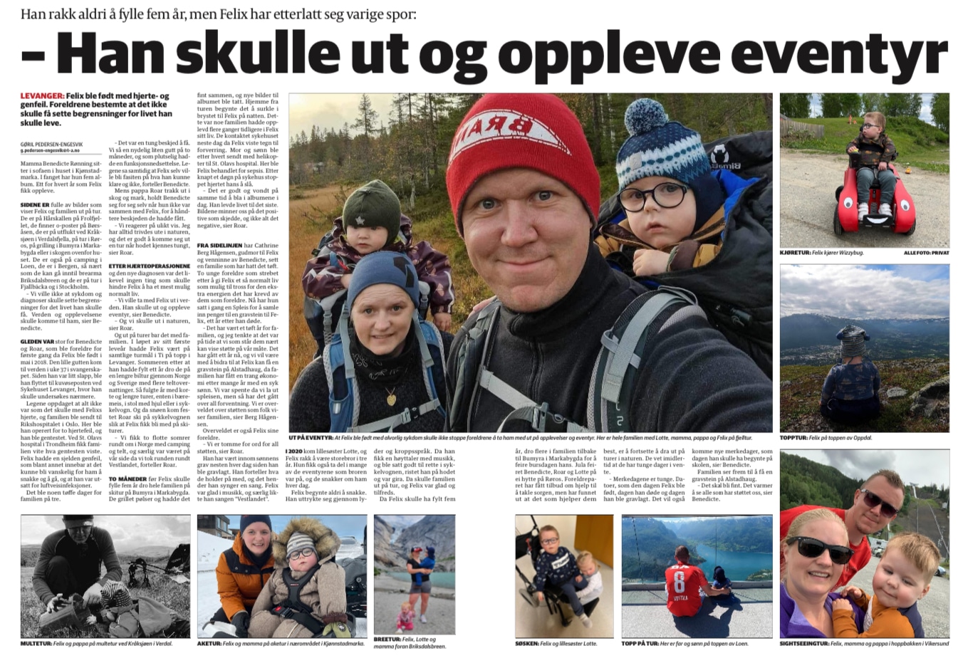 Felix har besøkt flere «topper», og kan skilte med besøk på Loen Skylift, Fløyen i Bergen, Hårskallen (mange ganger!), Stokkvola og han har vært på toppen av Oppdal. Han har også vært på Kråksjøen, Briksdalsbreen og telta rundt om i Norge og Sverige. Felix var også aktiv med orientering sammen med familien, og har fullført både «Ti på topp» og «O-trampen» flere ganger. Felix var en del av en familie som har fokus på muligheter, som ser få begrensninger og tok han med på alt.