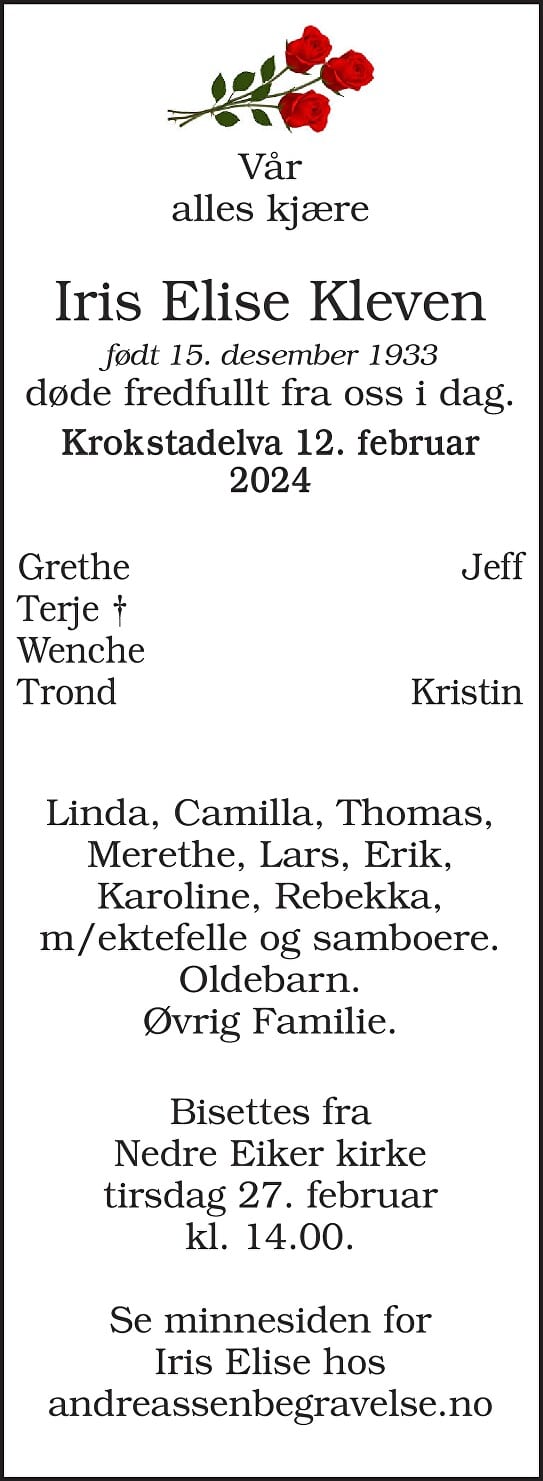 21. feb 2024 på 12:26Takk for alle gode minner. Savner deg mor❤️