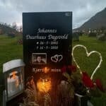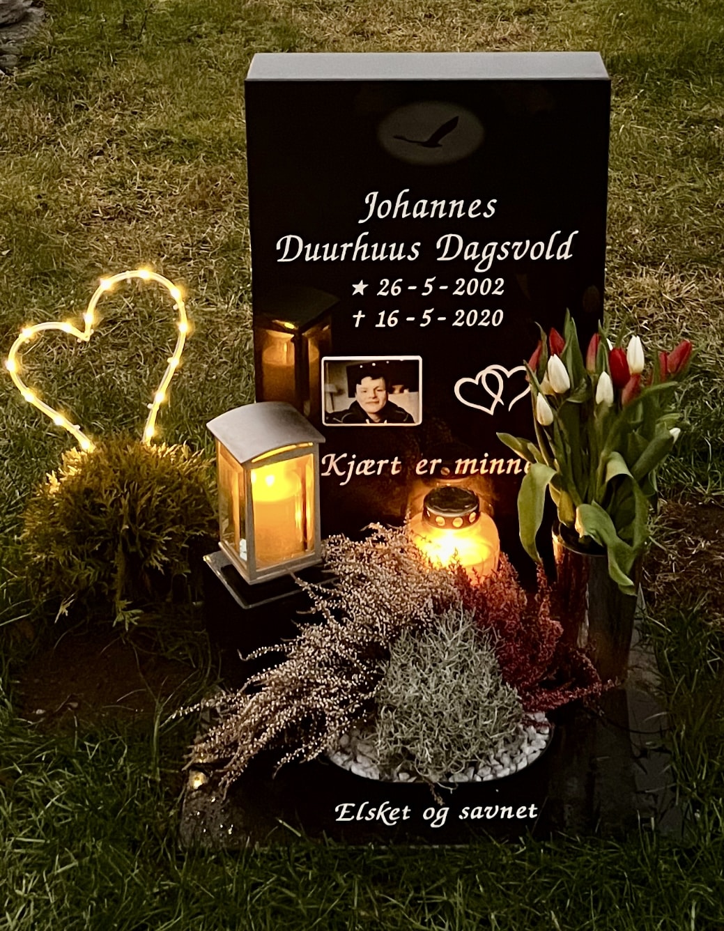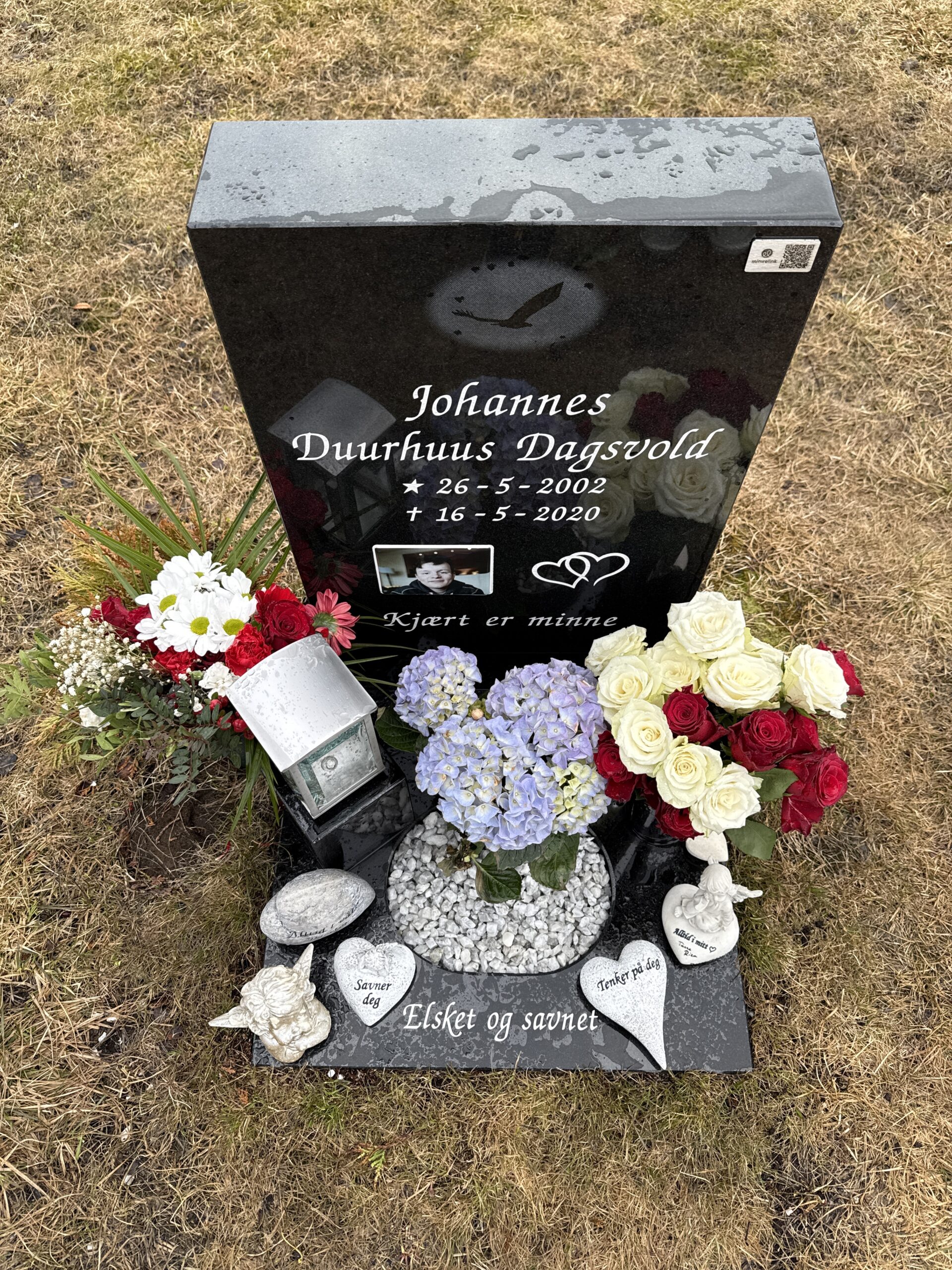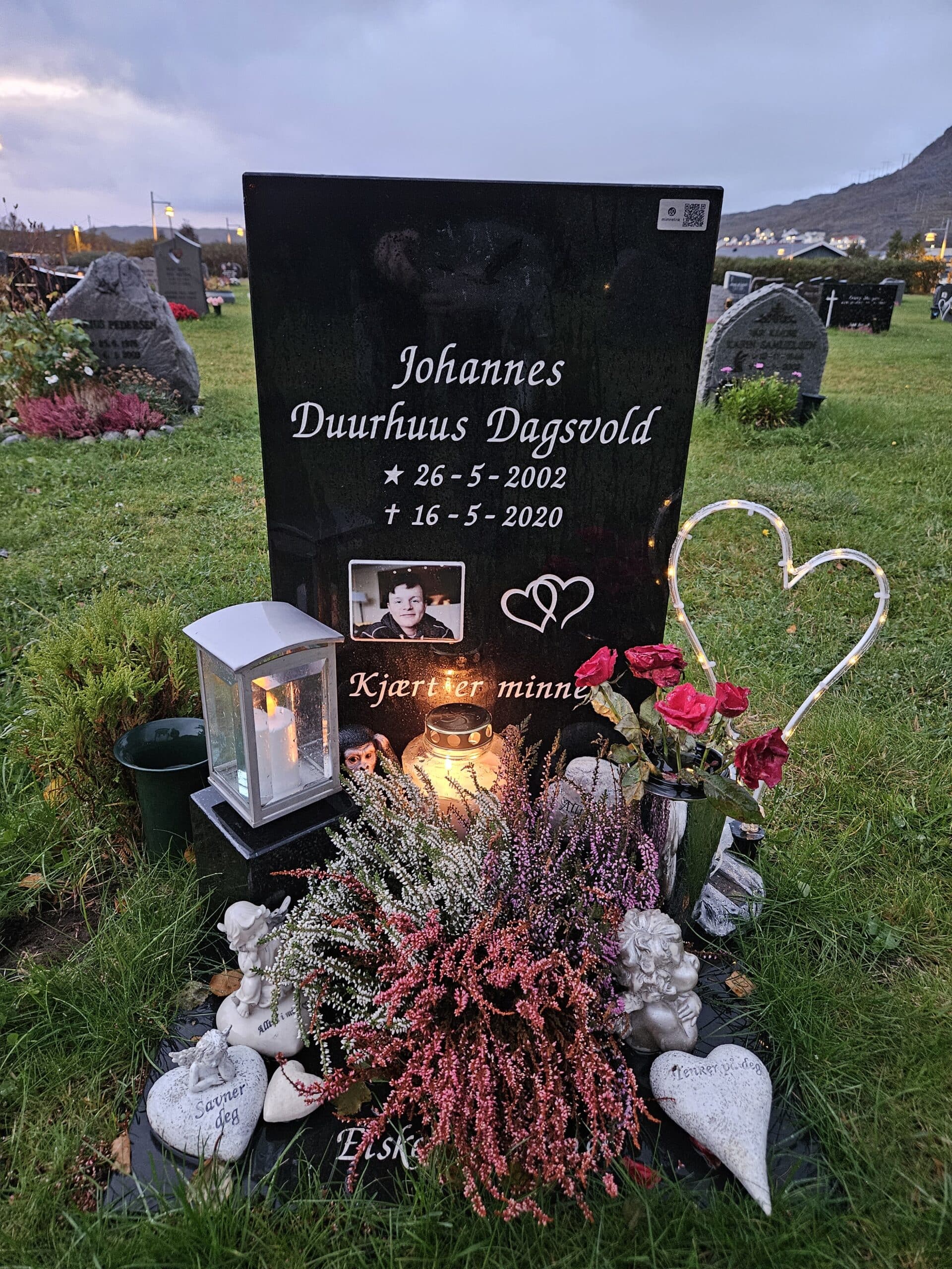 I dag har var vi å besøkte grava di Johannes, savne dæ❤️🕯️ Har satt Qr kode fra Mimrelink på gravstein til dæ i dag så kan dæm som besøke dæ å vil tenne lys, legge igjæn en hilsen å bilde av grava eller valgfritt fra telefon.