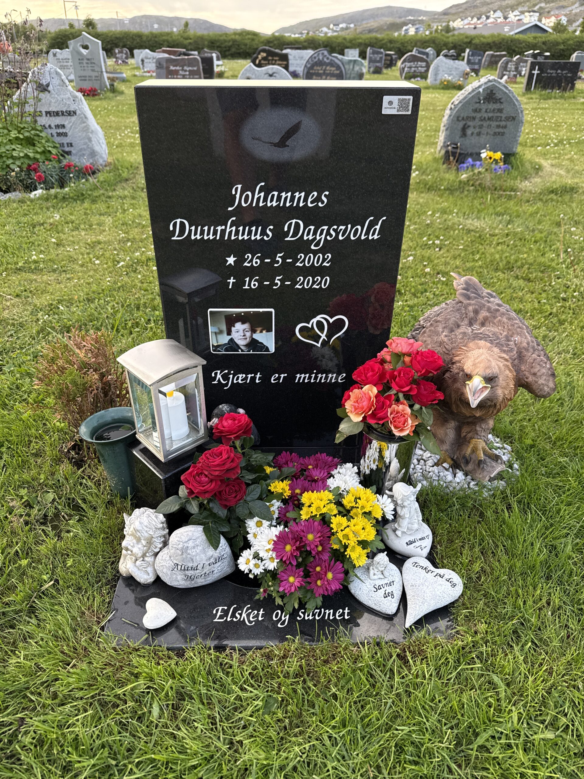 26. sep 2024 på 18:54I dag har var vi å besøkte grava di Johannes, savne dæ❤️🕯️ Har satt Qr kode fra Mimrelink på gravstein til dæ i dag så kan dæm som besøke dæ å vil tenne lys, legge igjæn en hilsen å bilde av grava eller valgfritt fra telefon.