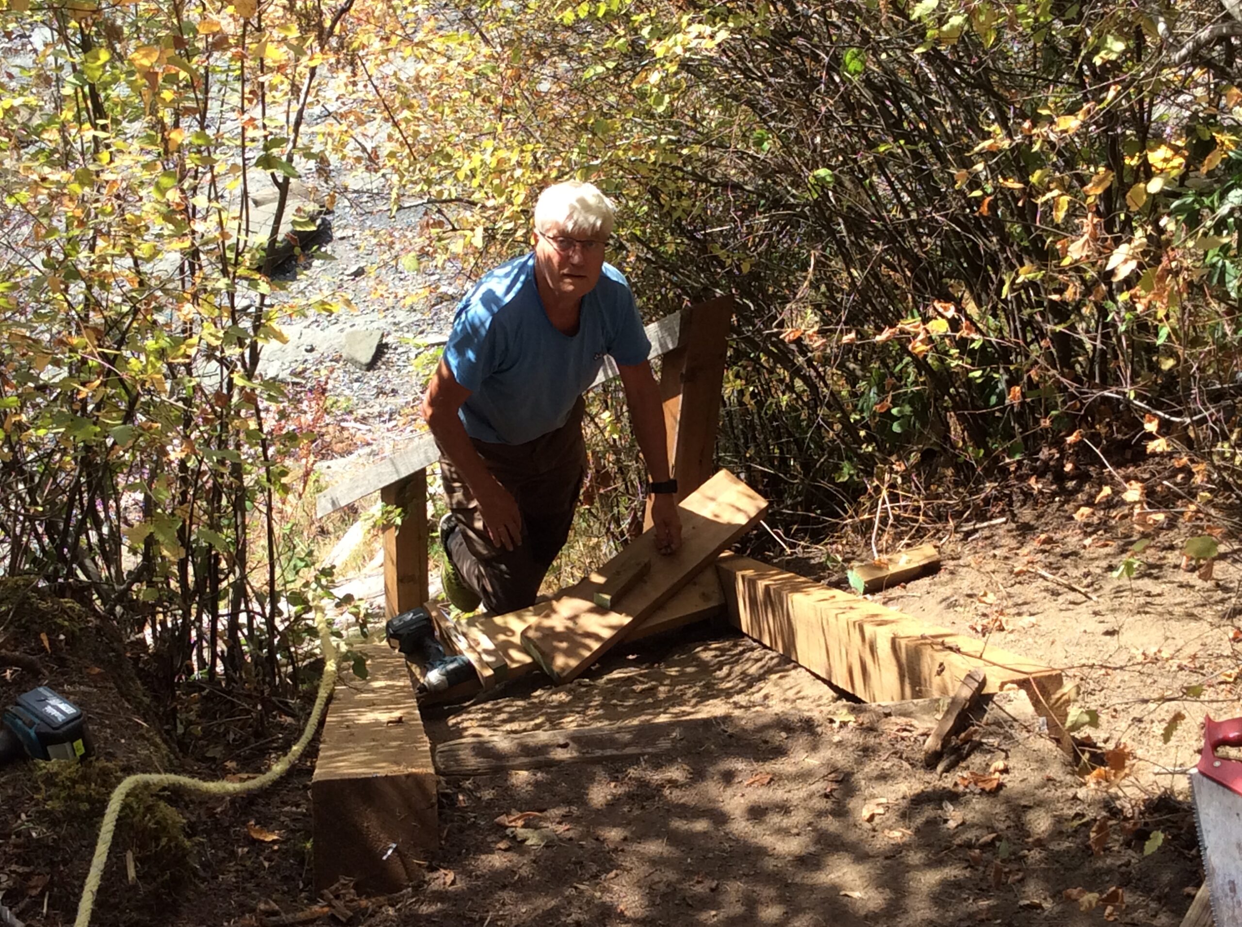 Vi har så mange gode minner som vi aldri vil glemme av Odd. Da dem kom og besøkte oss på Denman Island flere ganger, og Odd kunne jo ikke sitte stille uten og gjøre noe. Her fikk vi fin ny trapp ned til stranda. Han var flink, kunne alt.