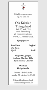 Bisettes i Svelvik kirke, torsdag 30. oktober kl. 13